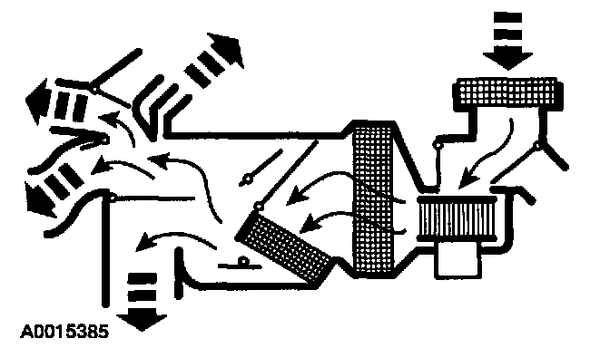- The air inlet door vacuum control motor is at full vacuum, closing off outside air from entering the passenger compartment.