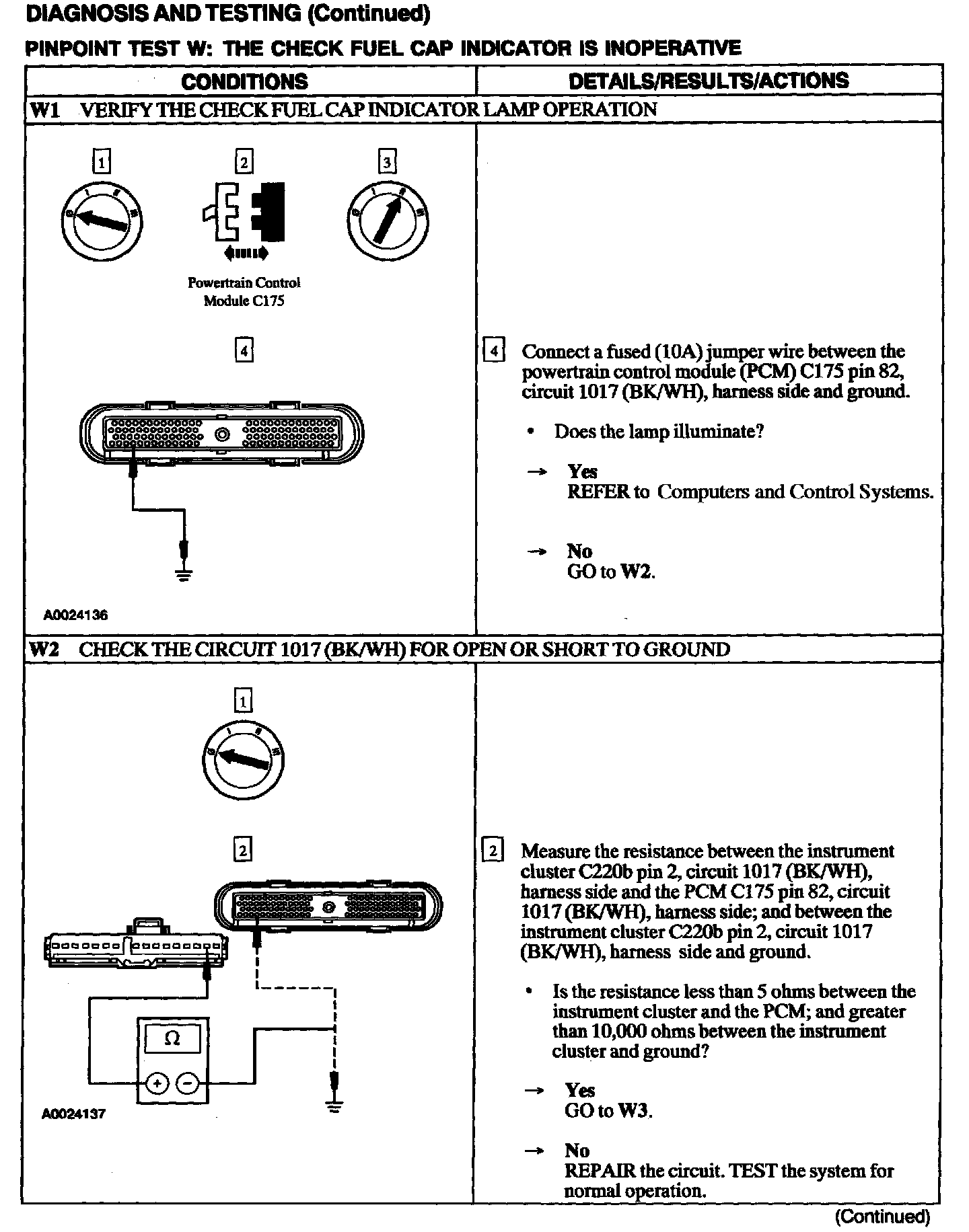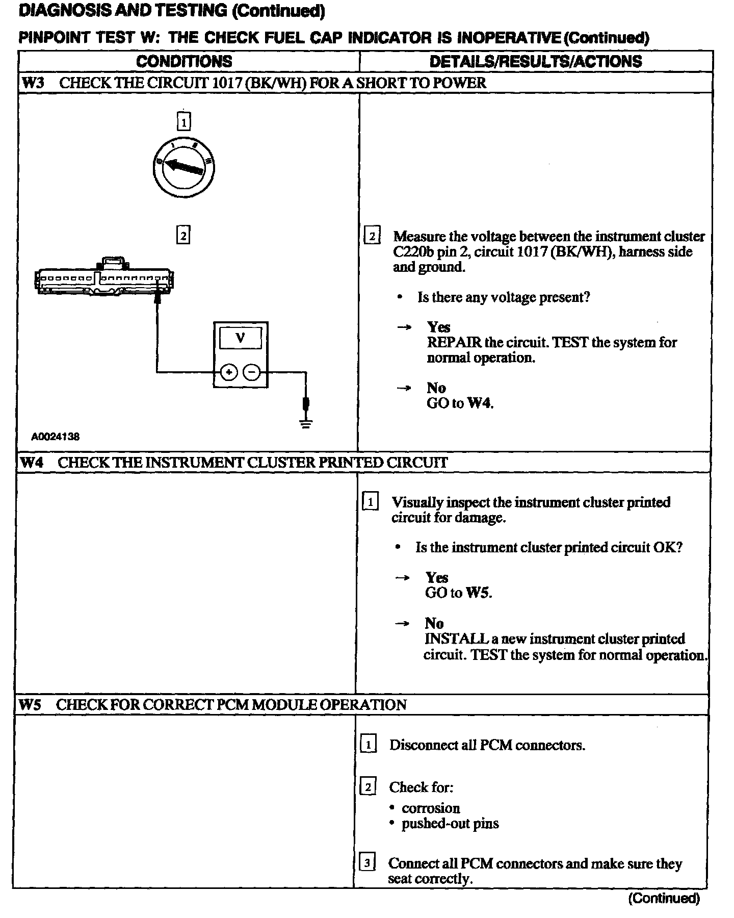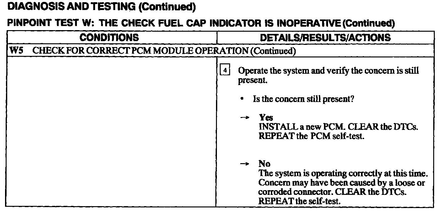 Test W: Check Fuel Cap Indicator Is Inoperative