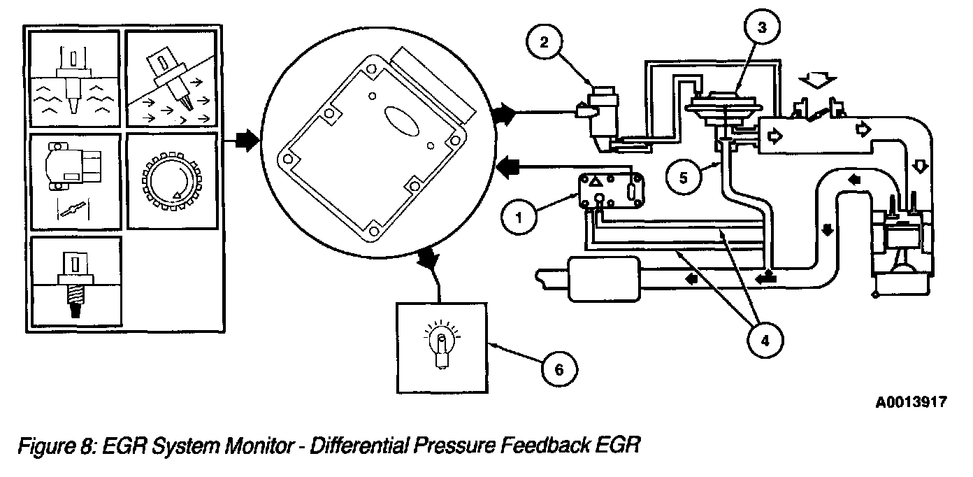1. The differential pressure feedback EGR sensor and circuit are continuously tested for opens and shorts. The monitor looks for the Differential Pressure Feedback EGR circuit voltage to exceed the maximum or minimum allowable limits.