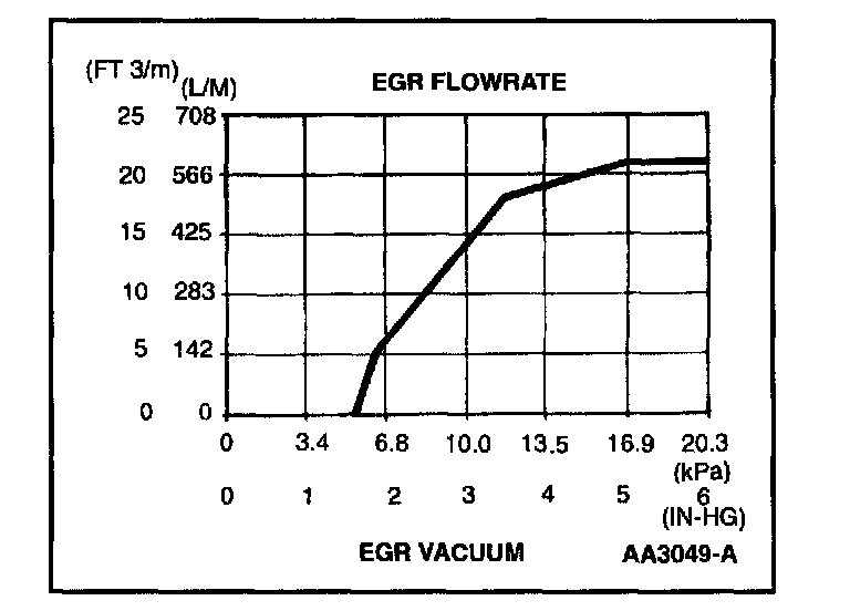 Since EGR flow requirement varies greatly, providing service specifications on flow rate is impractical. The on-board diagnostic system monitors the EGR valve function and triggers a Diagnostic Trouble Code if the test criteria is not met. The EGR valve flow rate is not measured directly as part of the field diagnostic procedures.