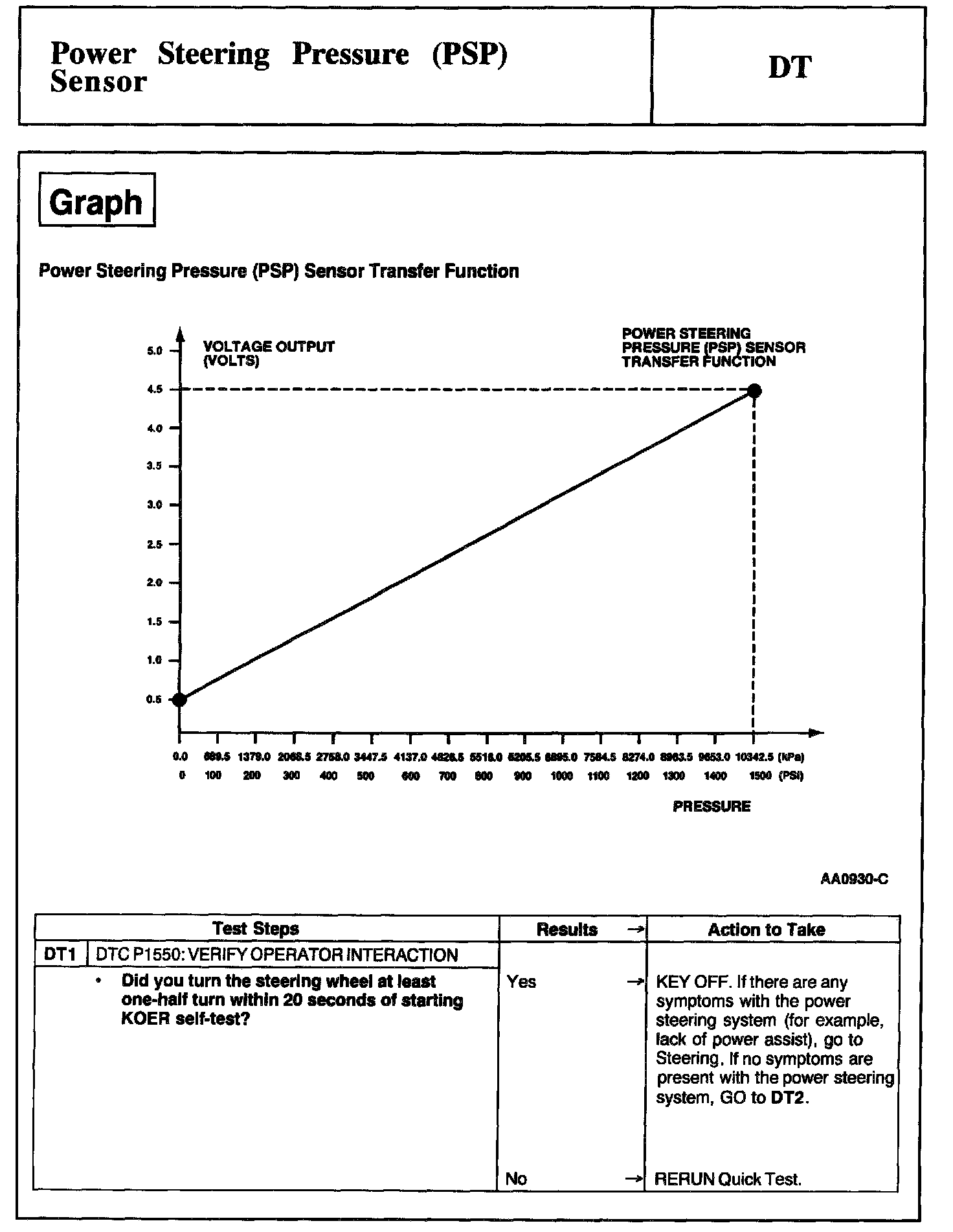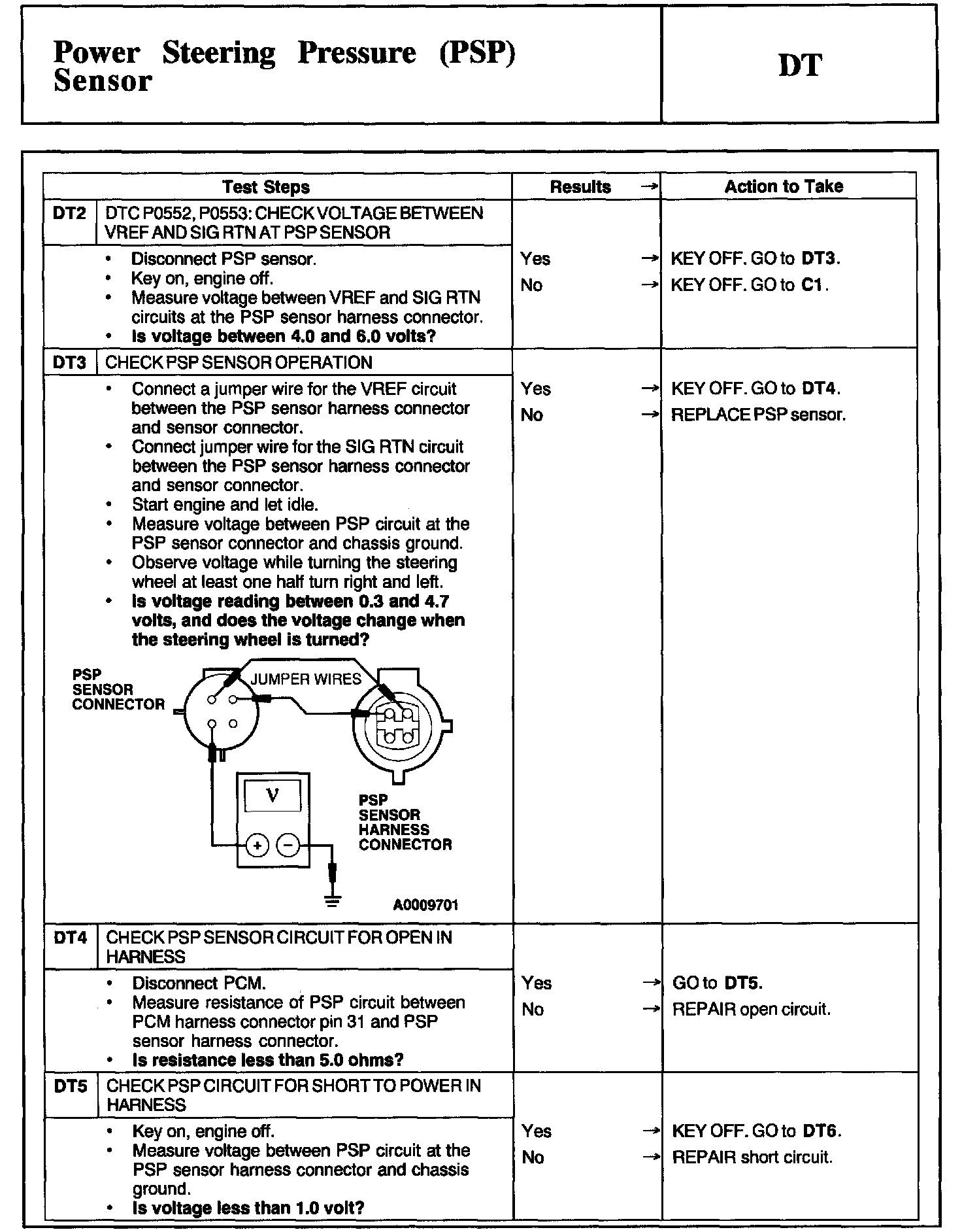Tests DT: Power Steering Pressure (PSP) Sensor
