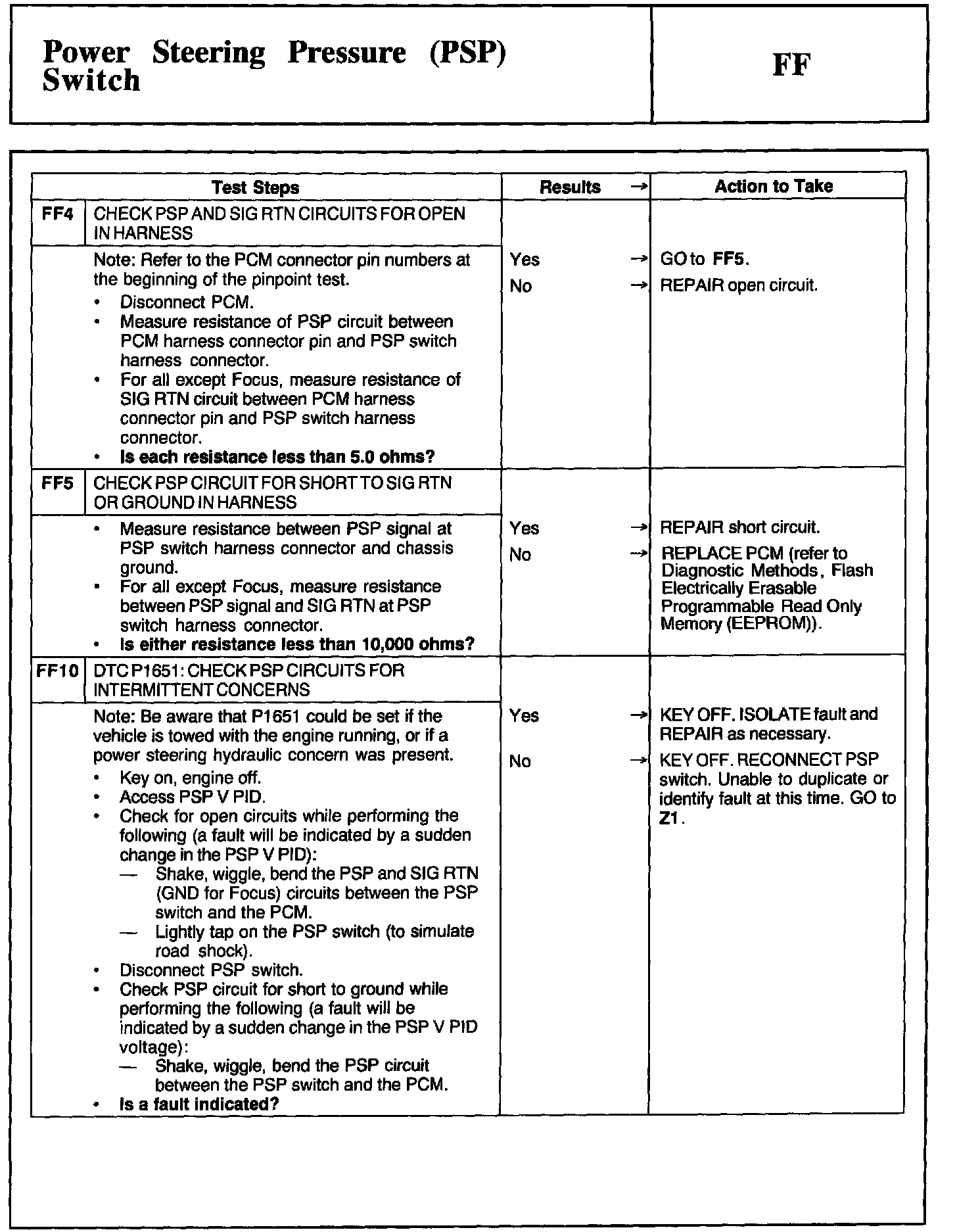 Tests FF: Power Steering Pressure (PSP) Switch