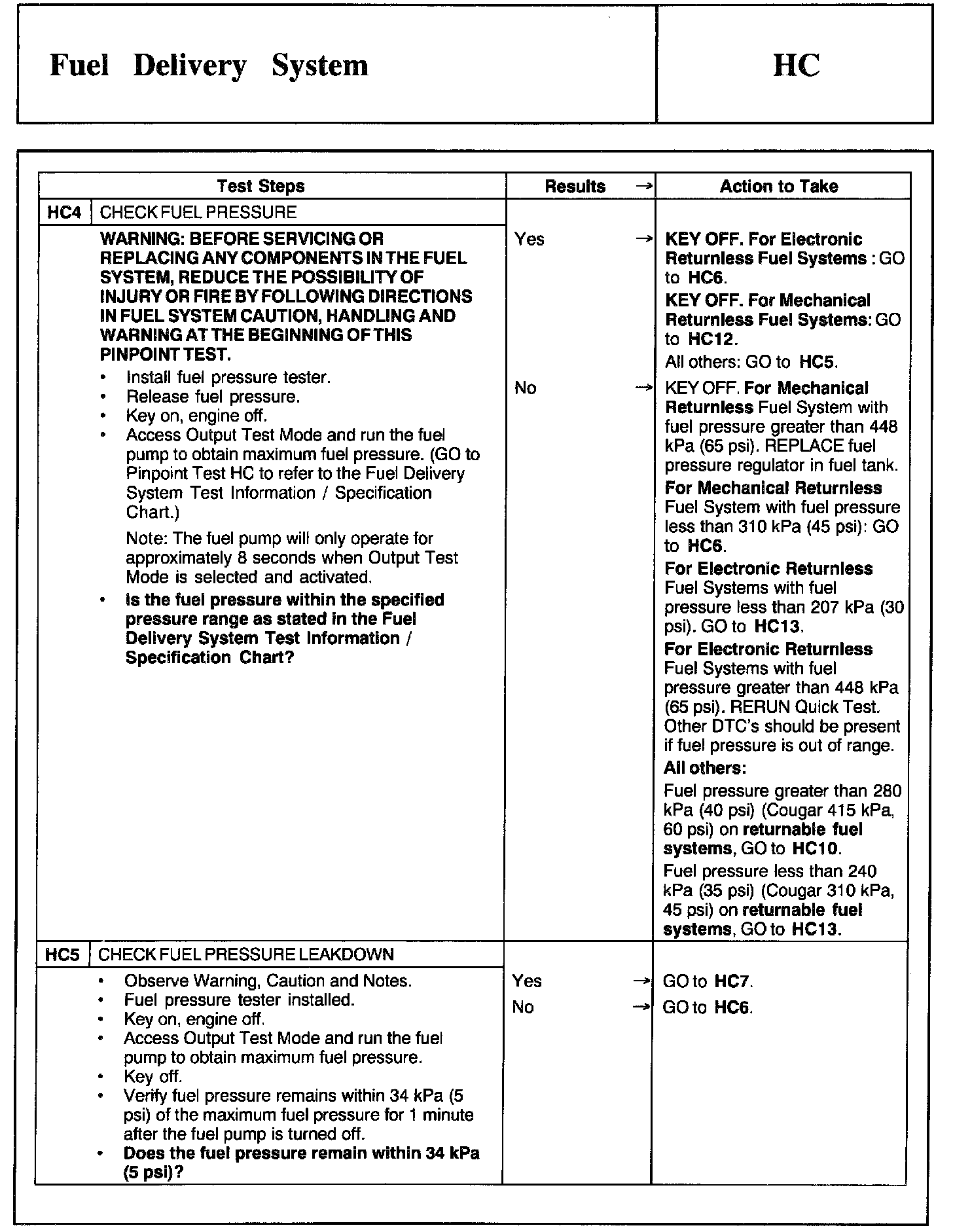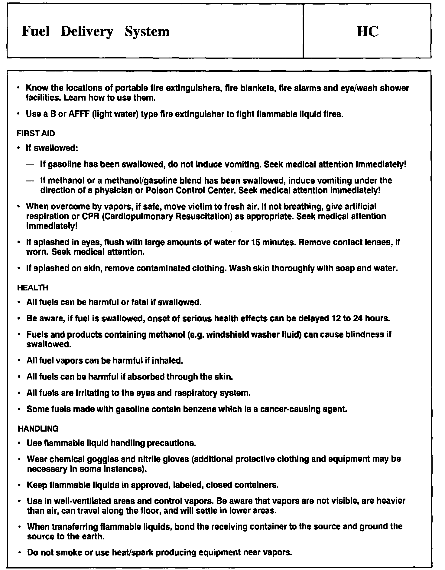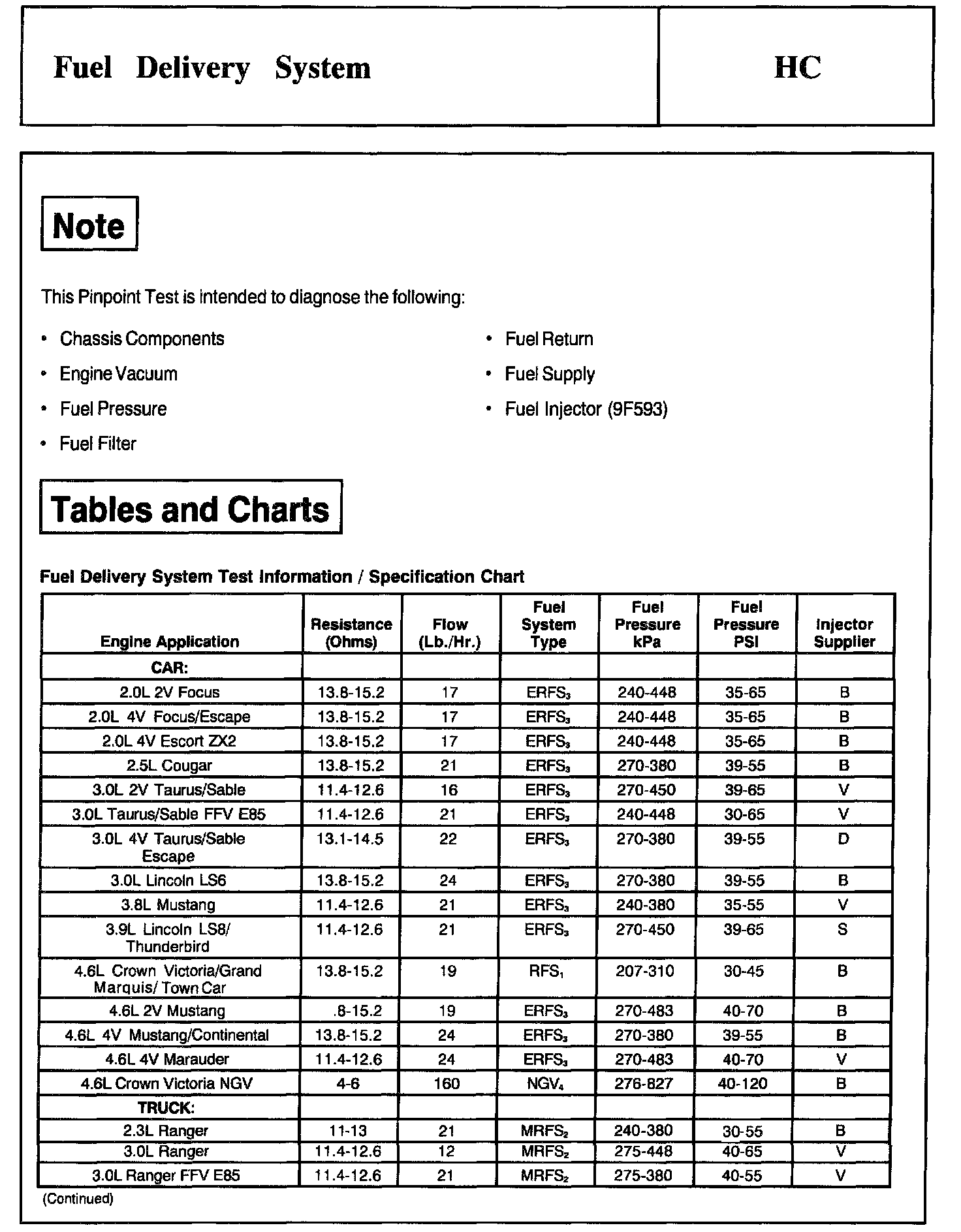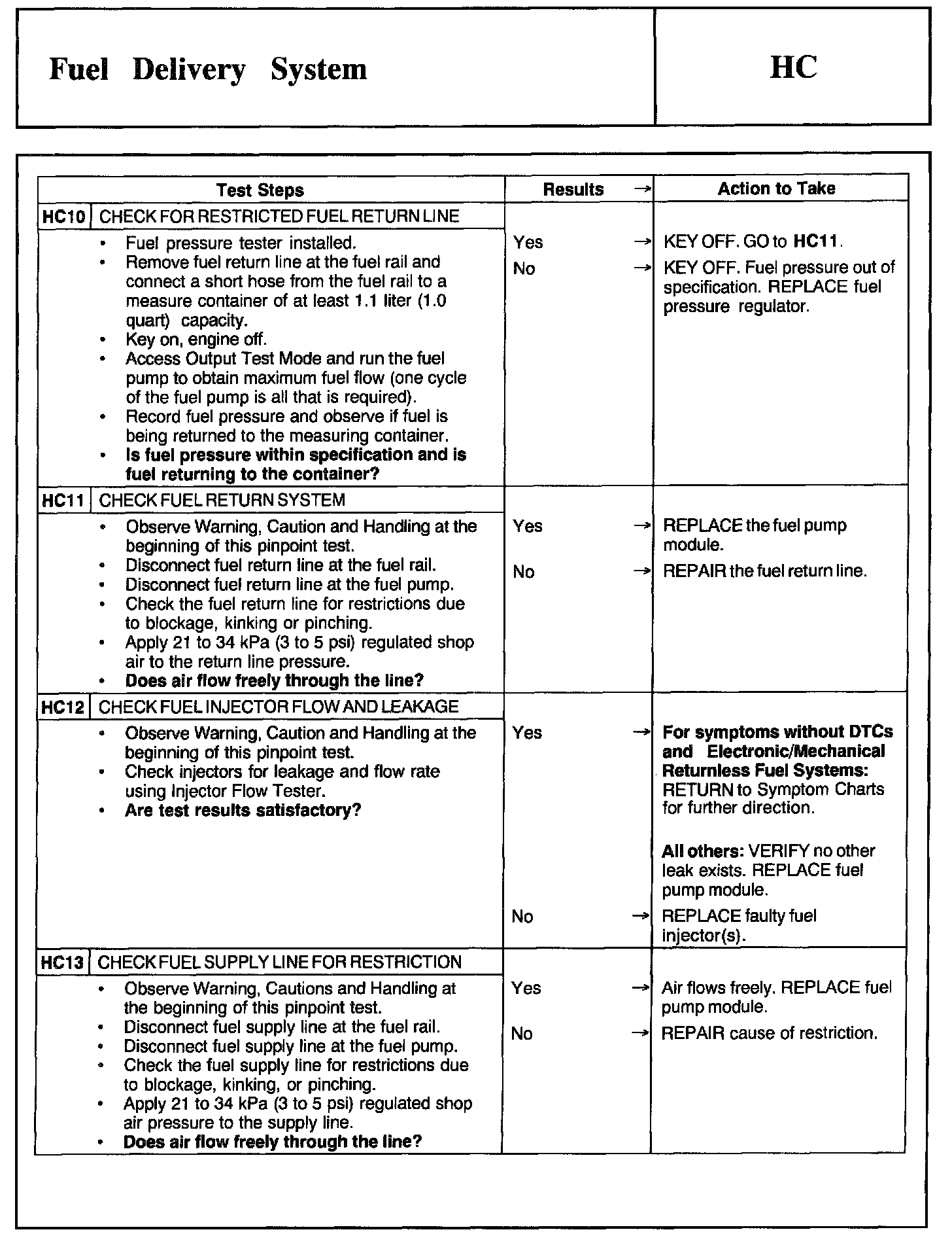 Tests HC: Fuel Delivery System
