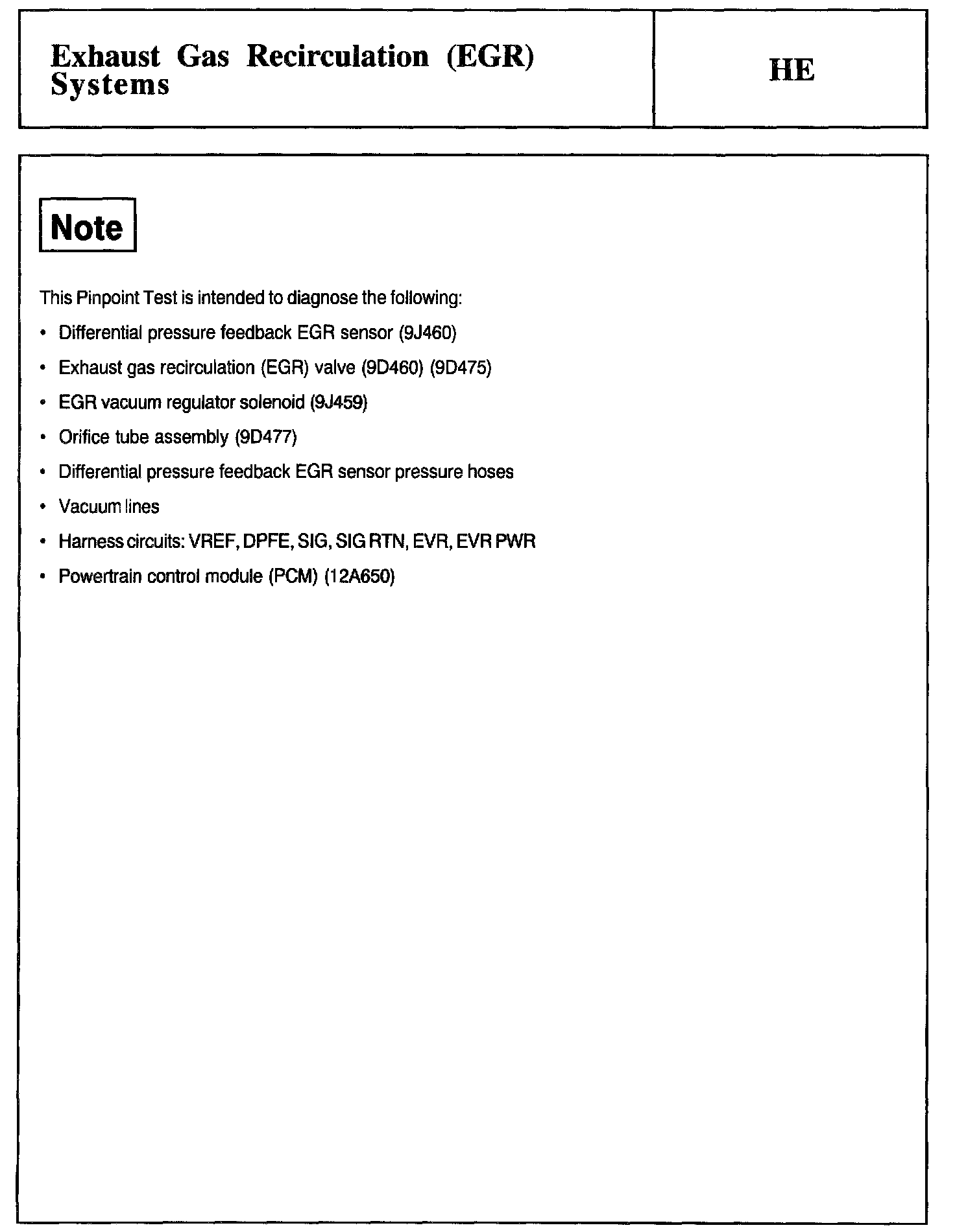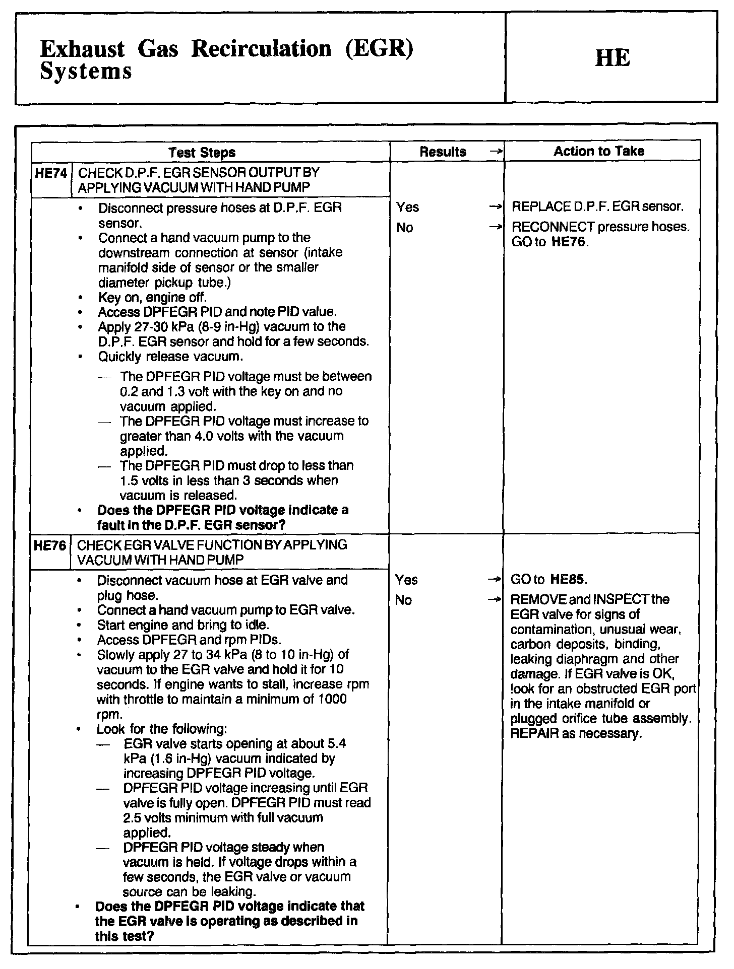 Tests HE: Exhaust Gas Recirculation (EGR) Systems