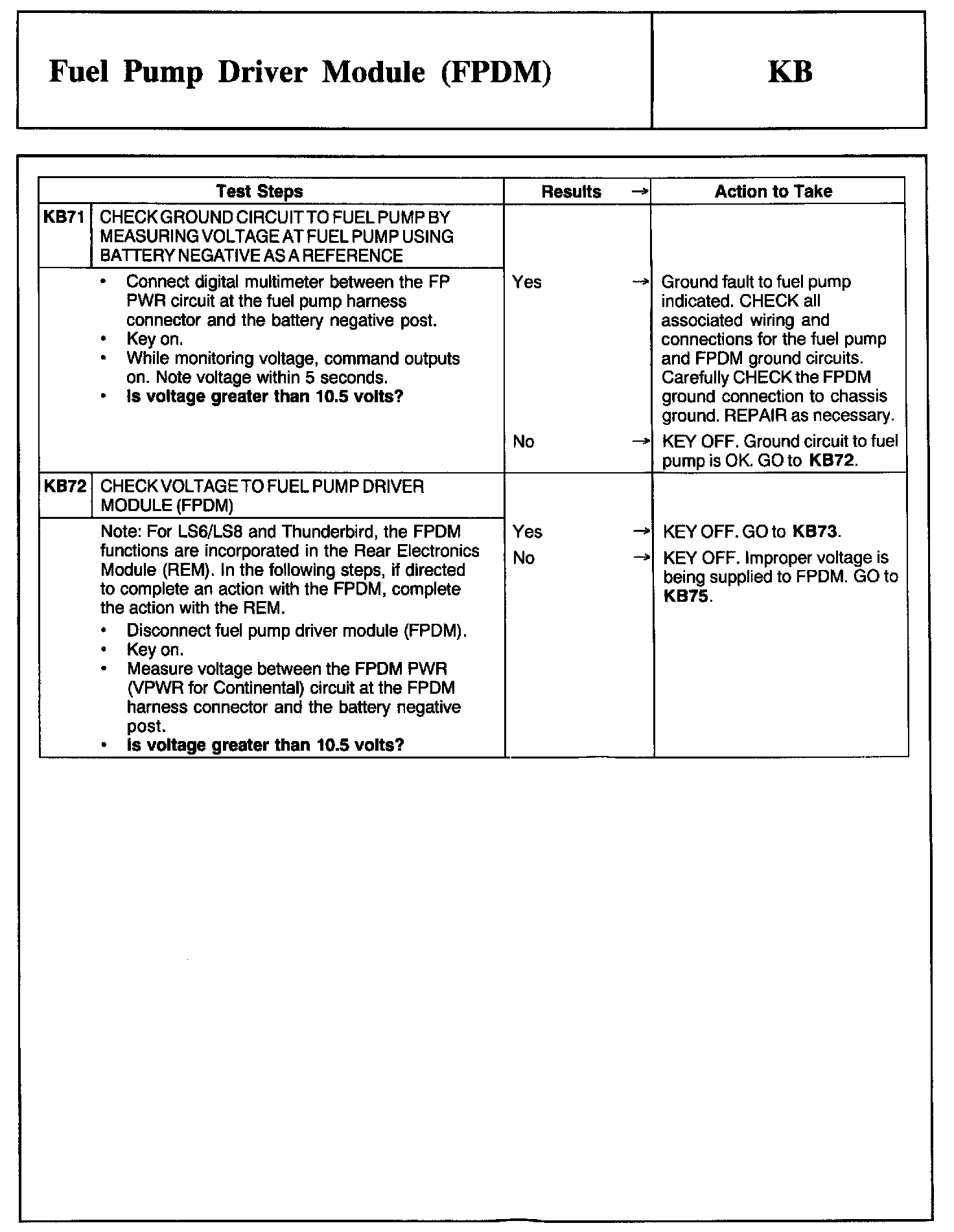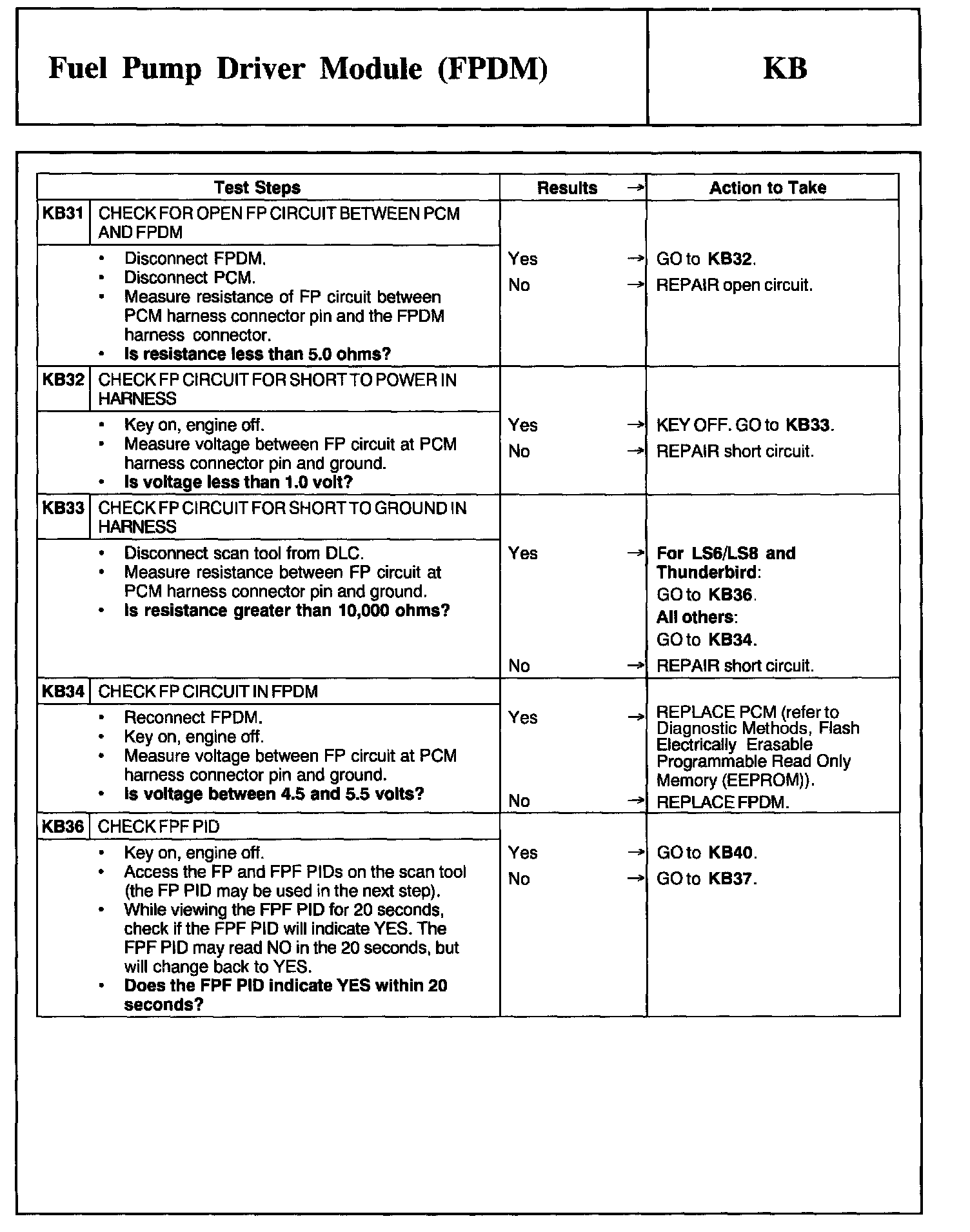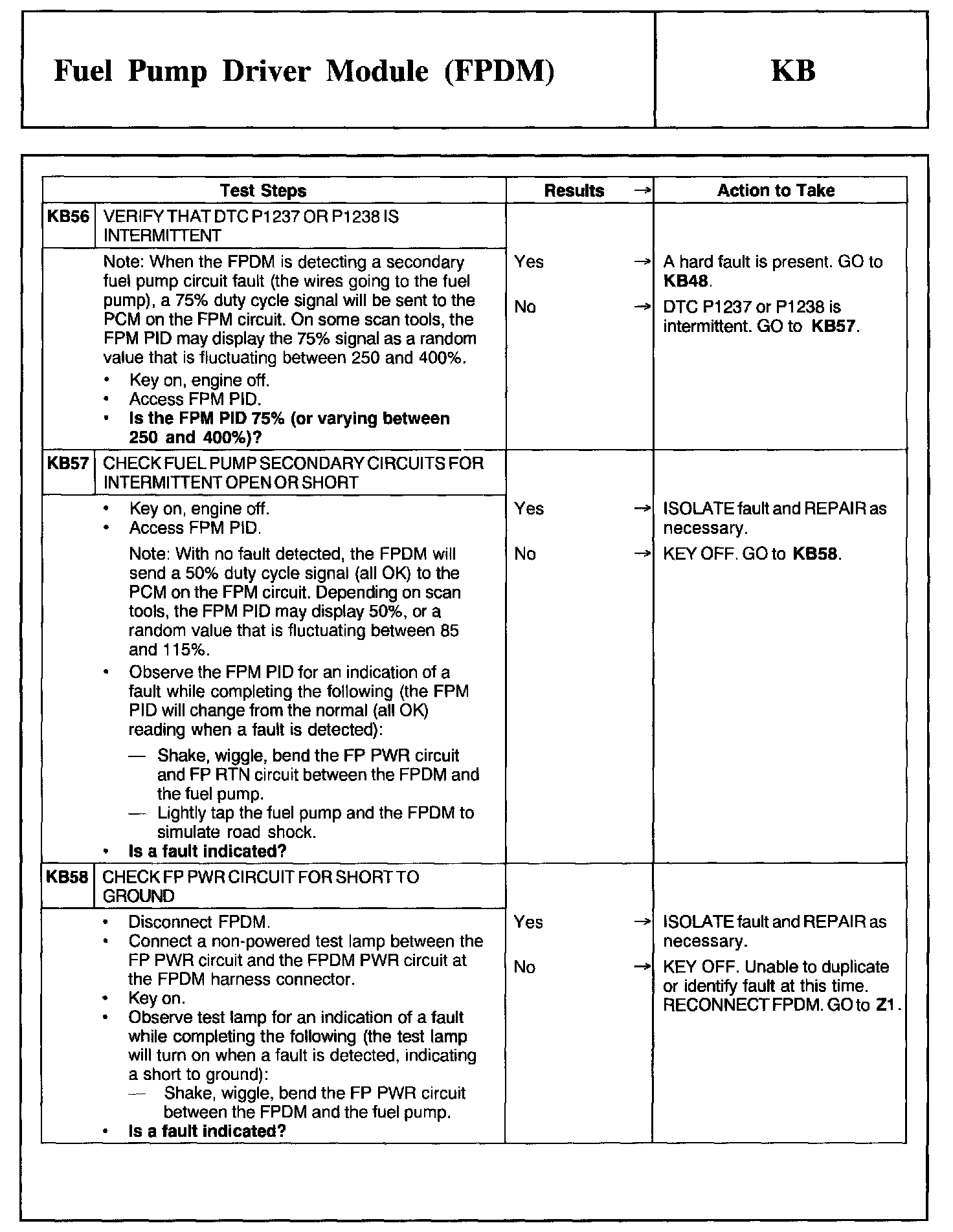 Tests KB: Fuel Pump Driver Module (FPDM)