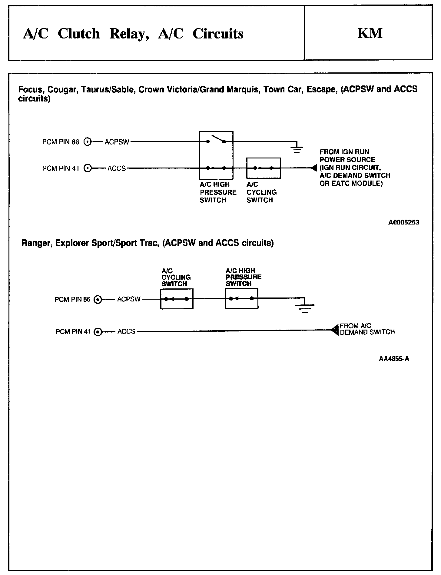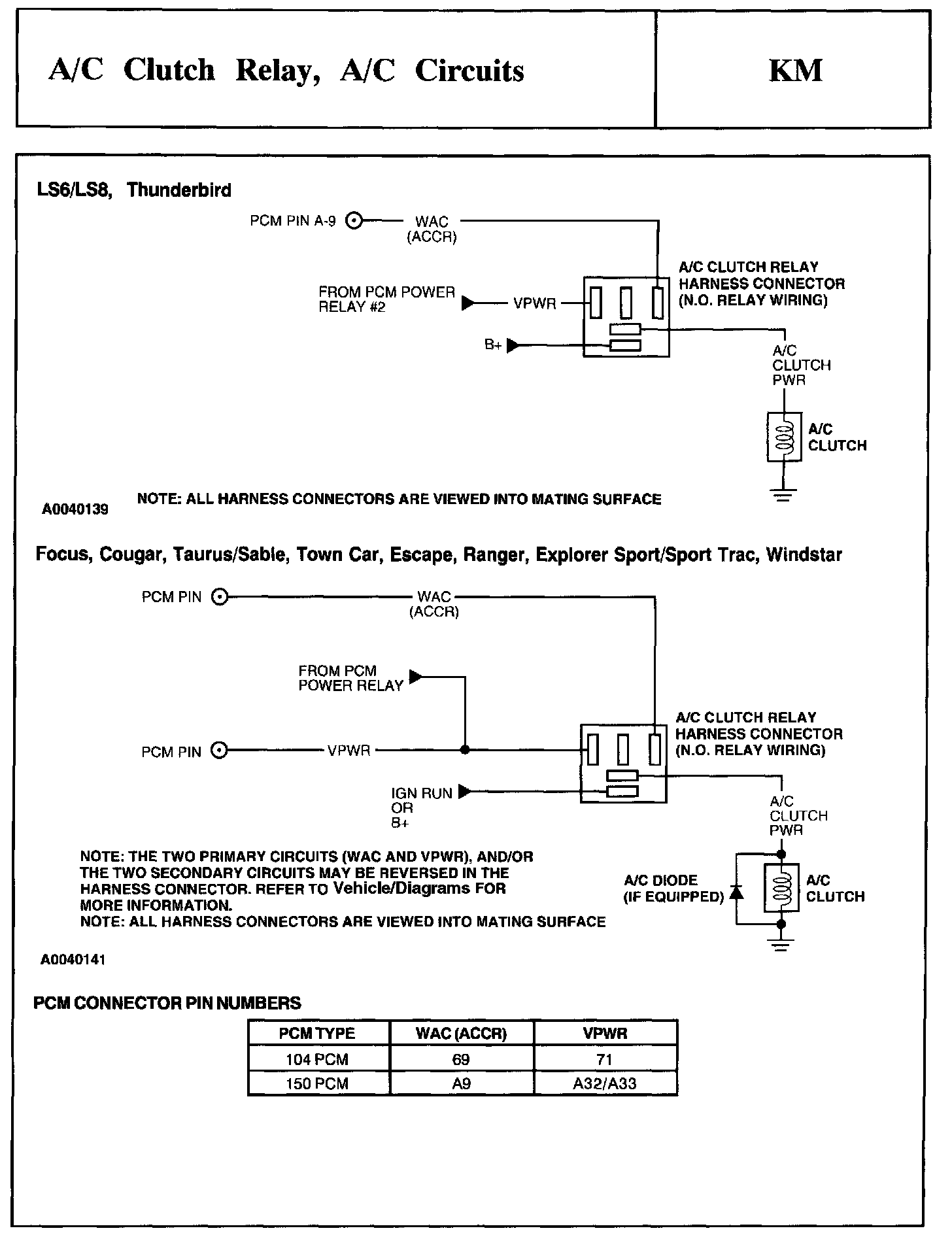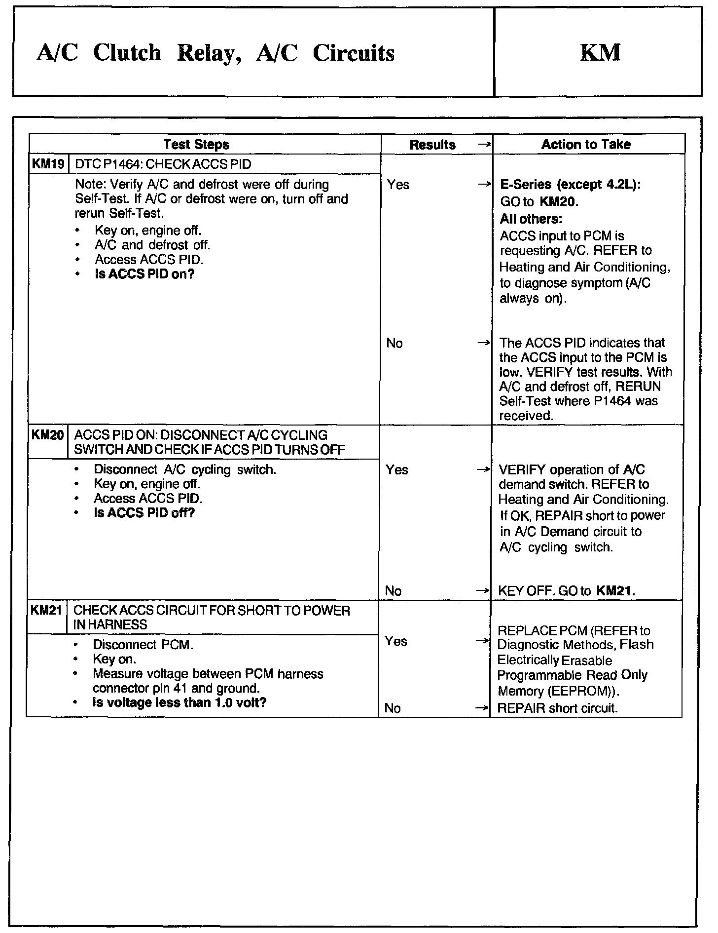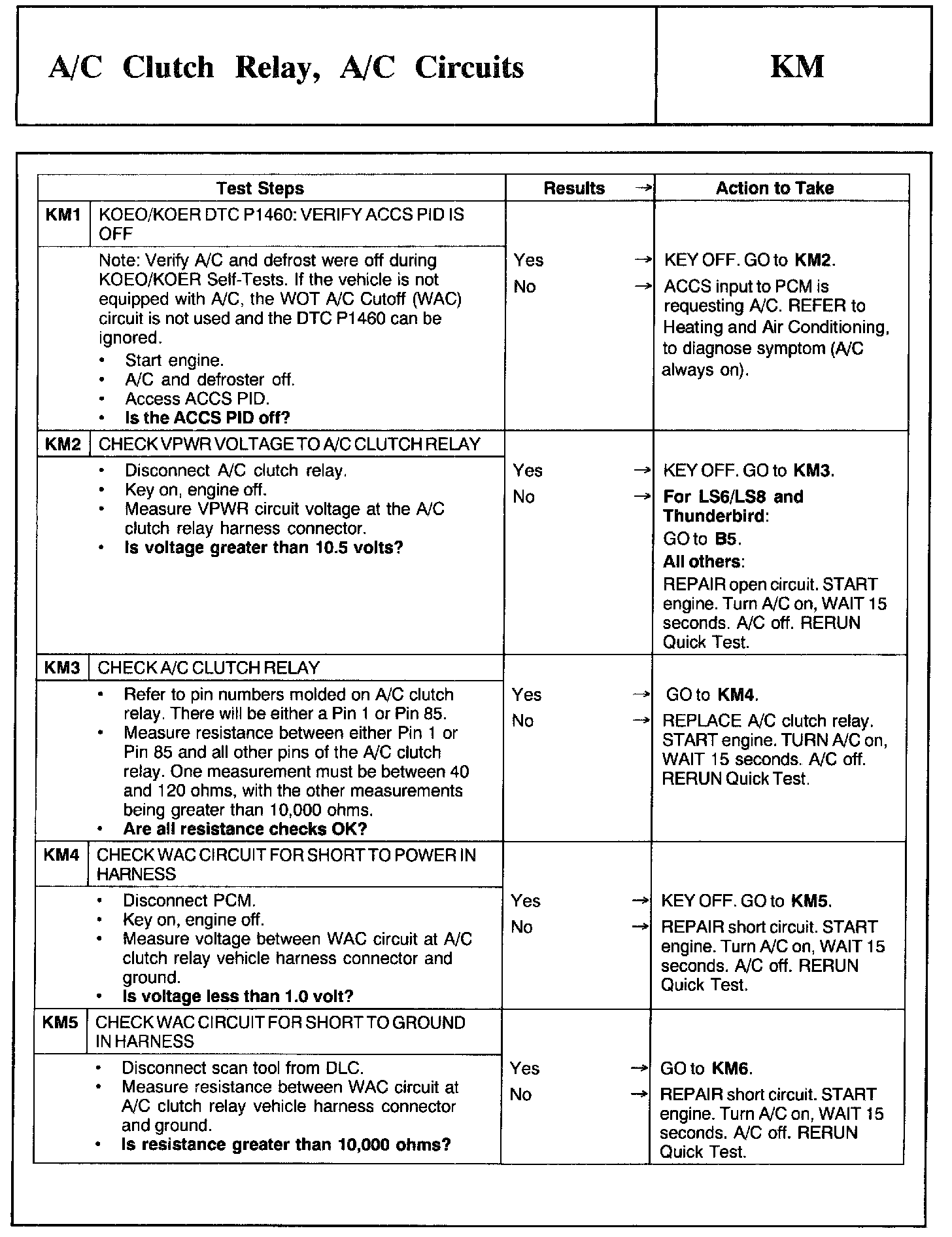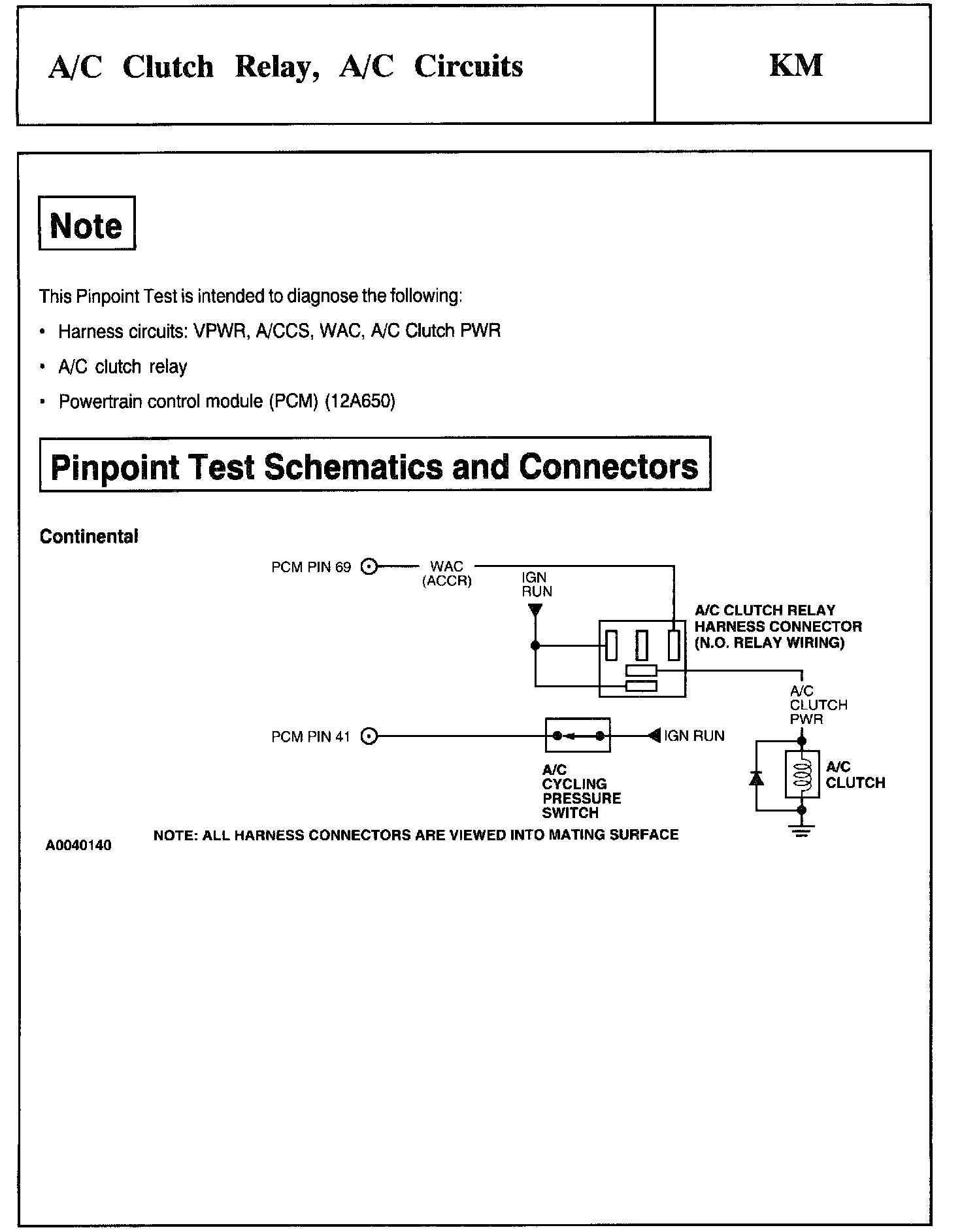 Tests KM: A/C Clutch Relay, A/C Circuits