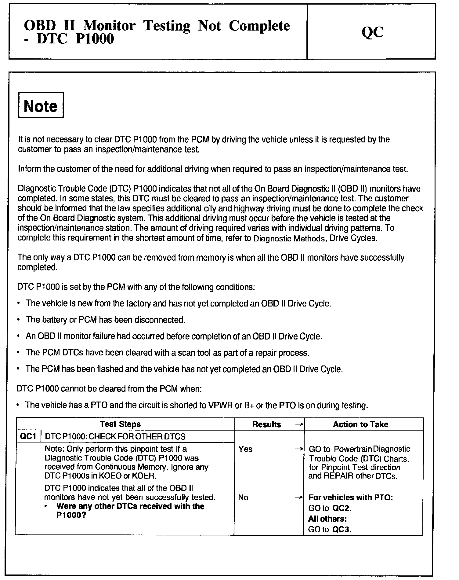 Tests QC: OBD II Monitor Testing Not Complete - DTC P1000