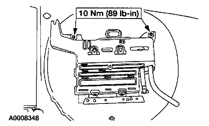 5. Remove the nuts and the evaporative emissions canister with bracket assembly from the vehicle.