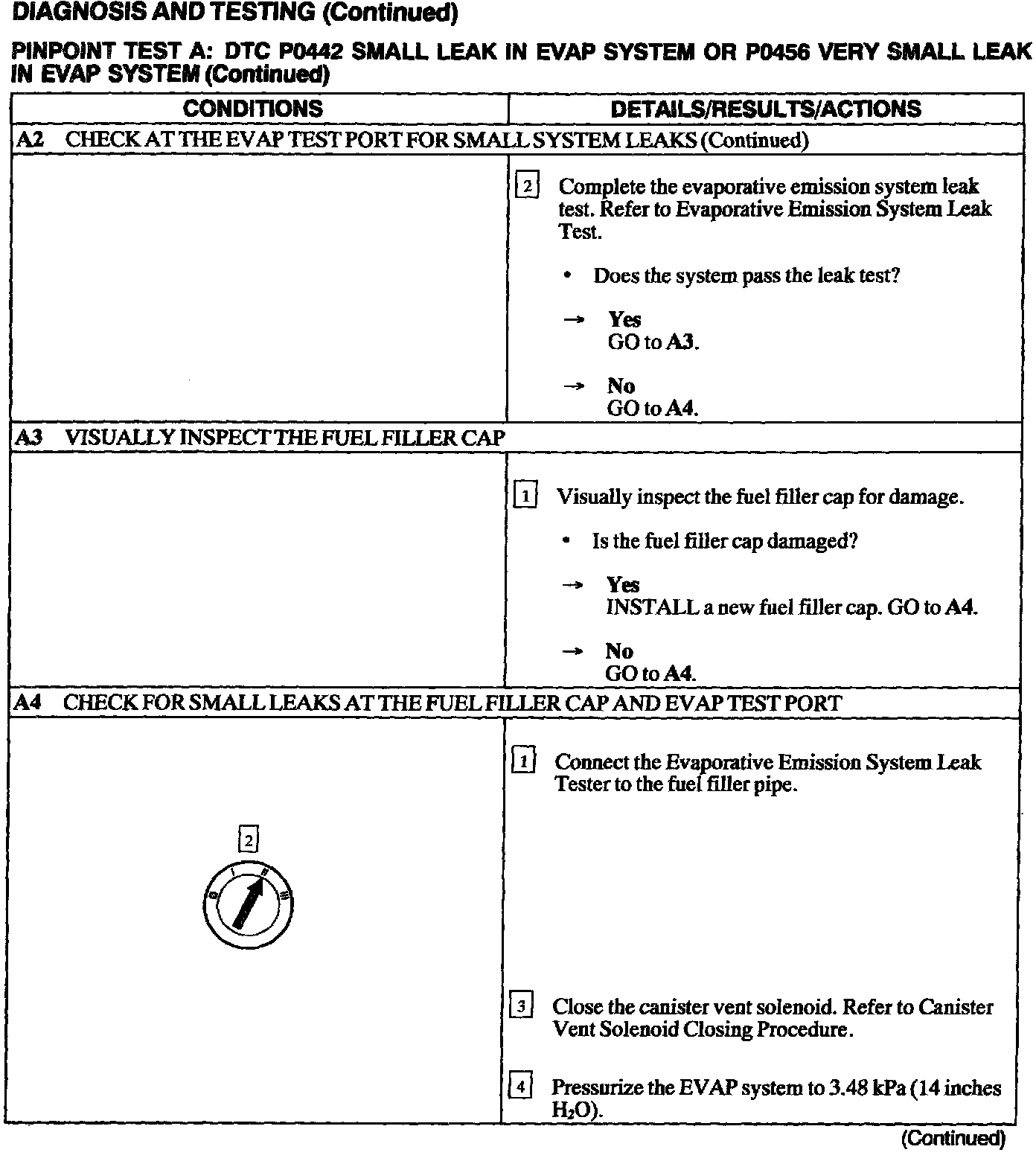 Test A: DTC P0442/P0456 Small/Very Small Leak In EVAP System