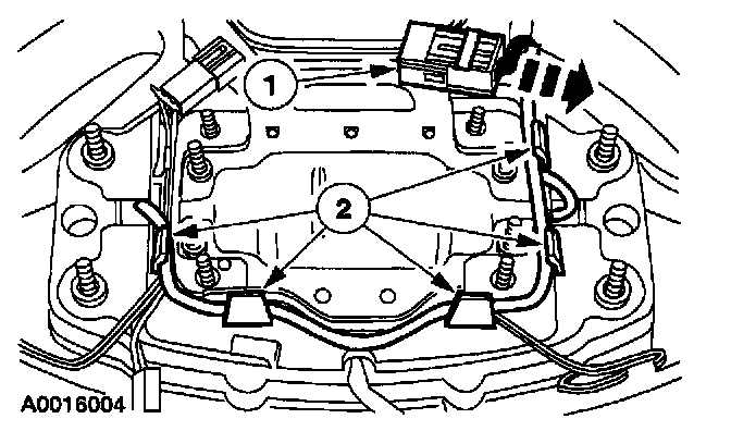 1 Remove the driver air bag module wire harness from the wire shield retaining Clips.