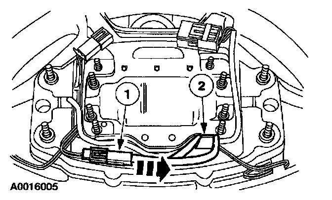 3 Make sure that there are not any wires between the air bag module backing plate and the steering wheel armature mating surfaces.