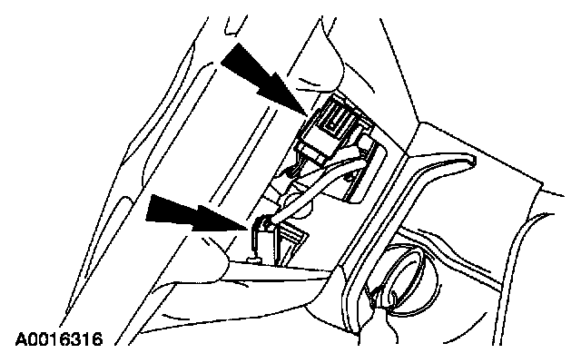 2 Release the retaining tab and remove the driver air bag module electrical connector from the wire shield.
