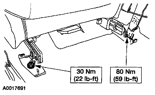 NOTE: If equipped, make sure to position the safety belt buckle anchor on top of the seat track before installing the nut.