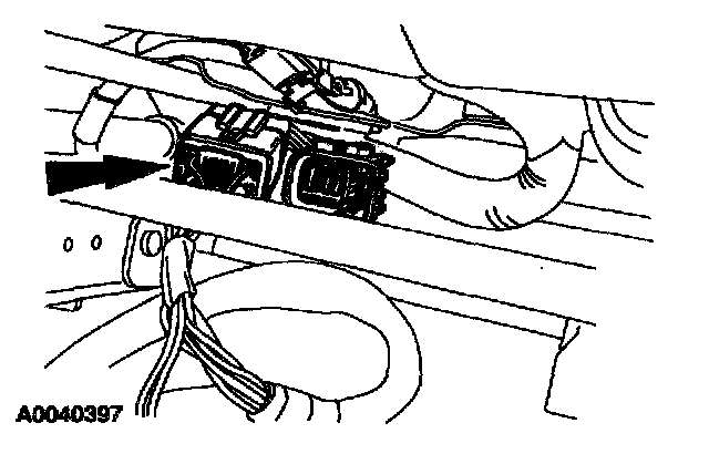 1 Remove the restraint system diagnostic tool from the seat harness side of the front driver safety belt buckle pretensioner electrical connector.