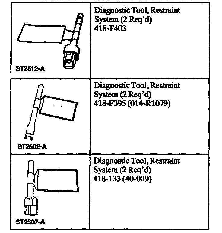 NOTE: After diagnosing or repairing an SRS, the restraint system diagnostic tools must be removed before operating the vehicle over the road.
