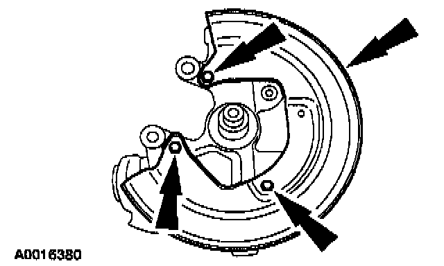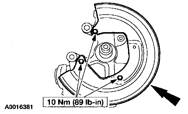 8. Position the disc brake shield and install the bolts.