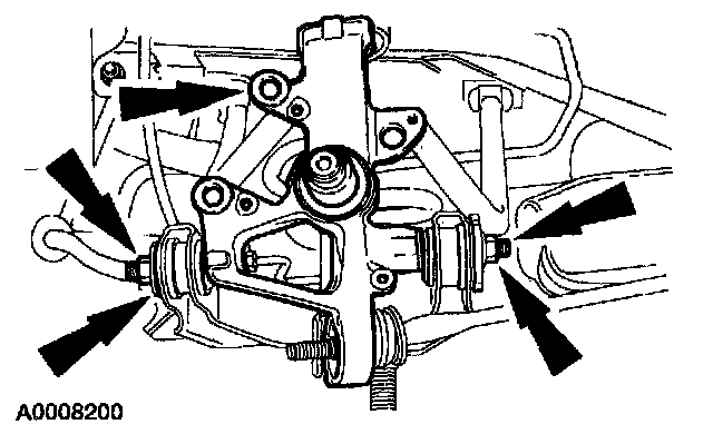 8. Remove and discard the nut. Using the special tools, detach the upper arm.