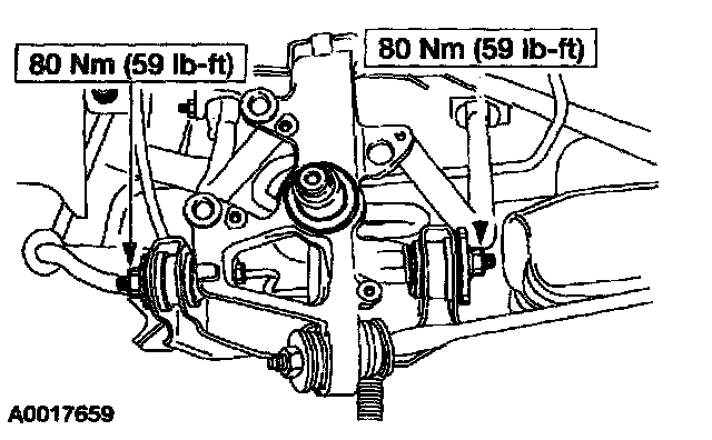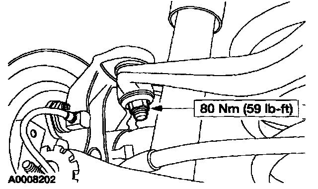 CAUTION: Suspension fasteners are critical parts because they affect performance of vital components and systems and their failure can result in major service expense. A new part with the same part number, or an equivalent part, must be installed if installation is necessary. Do not use a new part of lesser quality or substitute design. Torque values must be used as specified to make sure of correct retention of these parts.