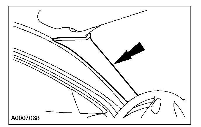 5. Apply urethane metal primer to minor scratches or exposed metal on the pinch weld caused during removal. Do not apply primer to the existing urethane adhesive.