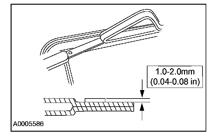 Trim the remaining urethane adhesive on the pinch weld, be sure to leave a layer of urethane approximately 1-2 mm thick on the flange. The urethane adhesive must be smooth and free of cuts and contamination after trimming. Avoid touching the urethane surface after preparation.