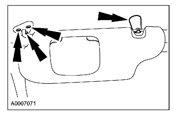 5. Remove the eight screws, the LH and RH sun visors and the two (2) sun visor clips.