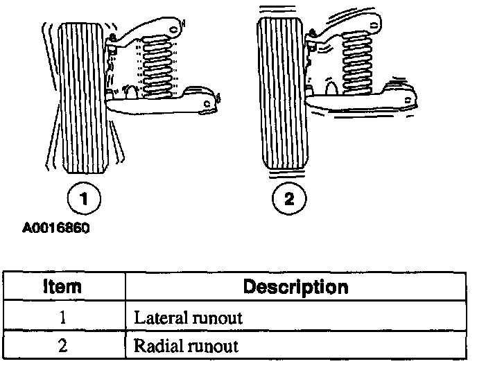 Lateral runout means measuring the movement or "wobble" of a wheel or tire at the sidewall. Radial runout means measuring the out-of-round at the tread surface.