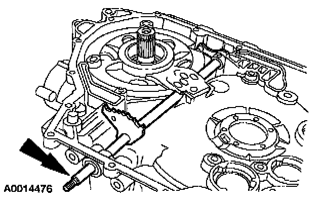 ^ Slide down the parking lever actuating rod to fit in the park pawl.