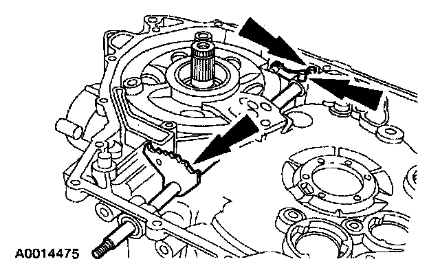 64. NOTE: The manual control valve detent lever must be installed with the shoulder and roll pin hole pointing toward the driven sprocket support.