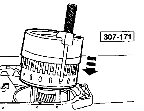 37. Using the special tools, install the front planetary/reverse clutch assembly.