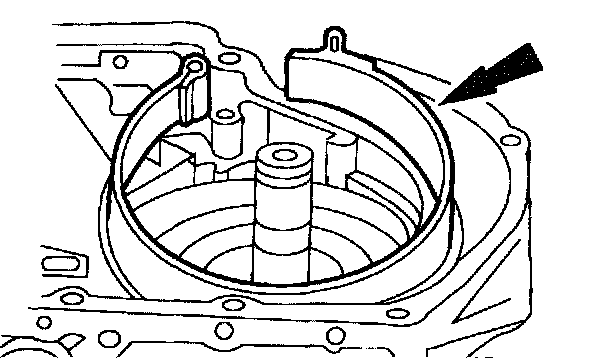 42. NOTE: The foot of the overdrive retainer goes down against the band.