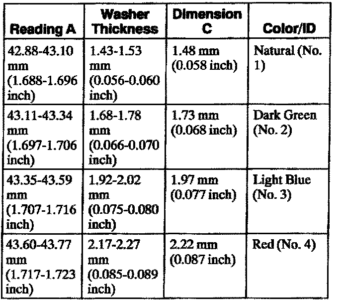 48. NOTE: Reading A and Dimension C from the chart will be used in the selection of the No. 5 thrust washer.