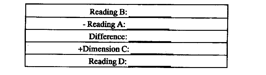 Subtract reading A from Reading B and add the difference between A and B to dimension C. Record this reading as D.