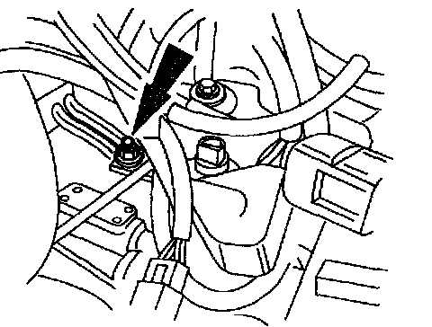 8. Remove the power steering line bracket.