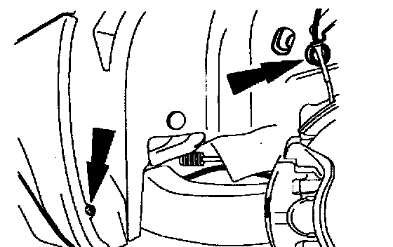 22. Remove the LH front fender splash shield upper screws.
