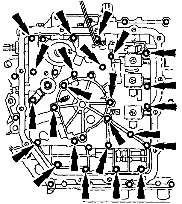 31. CAUTION: Do not remove the two bolts that hold the pump assembly and main control valve body together as the pump assembly may fall from the main control valve body.