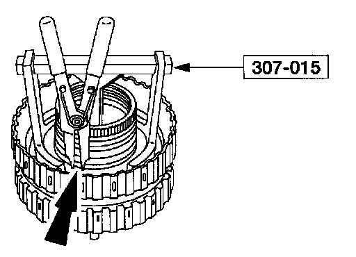 3. CAUTION: Do not allow the Clutch Spring Compressor to bottom out on the piston or damage to the piston could occur.