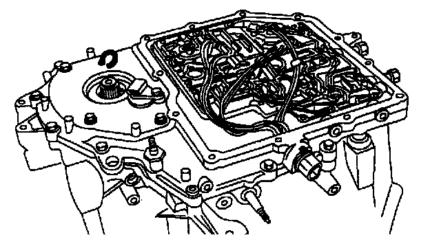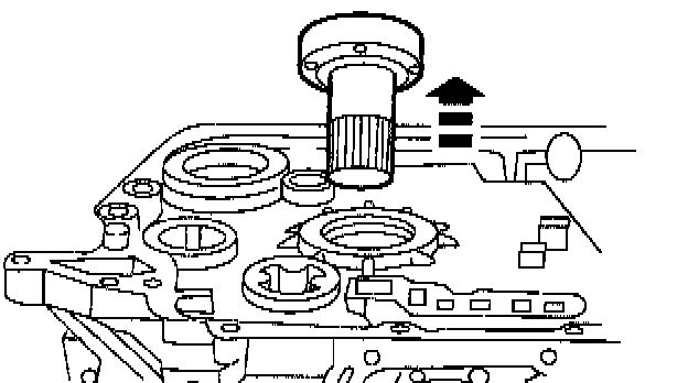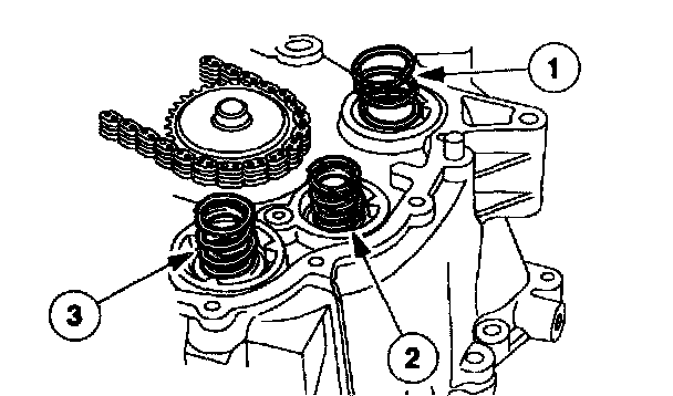 9. CAUTION: The overdrive band servo spring cover is under spring tension. Care must be taken during removal as components may be ejected from the case.