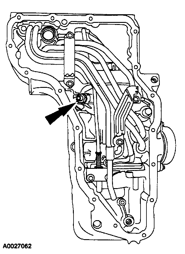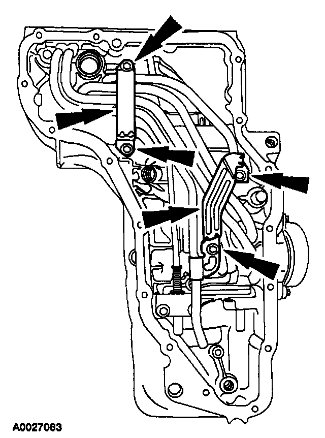 25. CAUTION: Do not remove the two bolts that hold the pump assembly and main control valve body together as the pump assembly may fall from the main control valve body and become damaged.