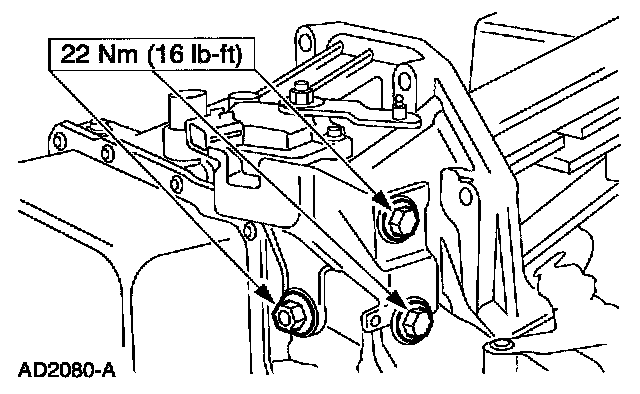 1. Install the rear engine support bracket and bolts.