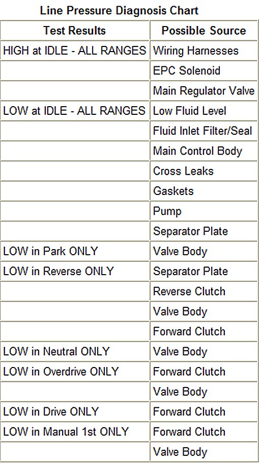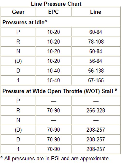 2. Start the engine and check the line pressures see the line pressure chart to determine if the line pressure is within specification.