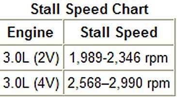 1. Find the specified stall rpm for the vehicle see the stall speed chart. Use a grease pencil to mark the rpm on the dial of a tachometer.