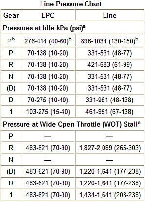 2. Start the engine and check the line pressures see the line pressure chart to determine if the line pressure is within specification.