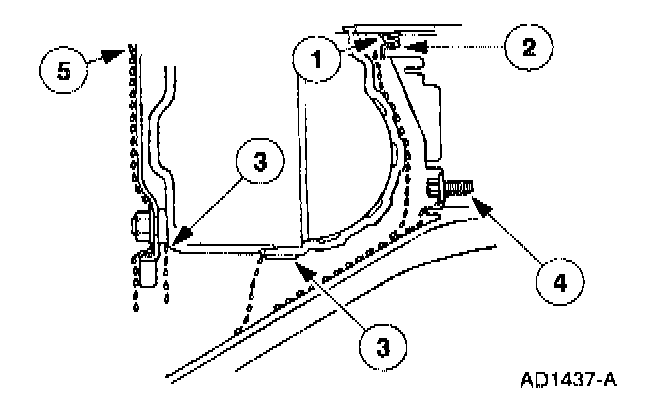 4. Fluid leakage from the bolts inside the converter housing will flow down the back of the torque converter housing. Leakage may be from loose or missing bolts, torn or damaged chain cover gasket.