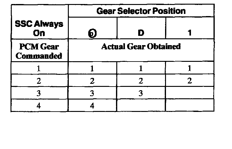Shift Solenoid Failure Mode Chart "Always On"