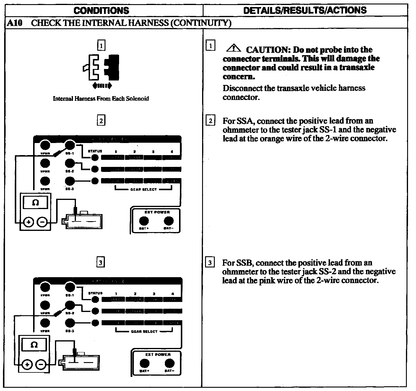 NOTE: Refer to the Transaxle Internal Harness Connector illustration.