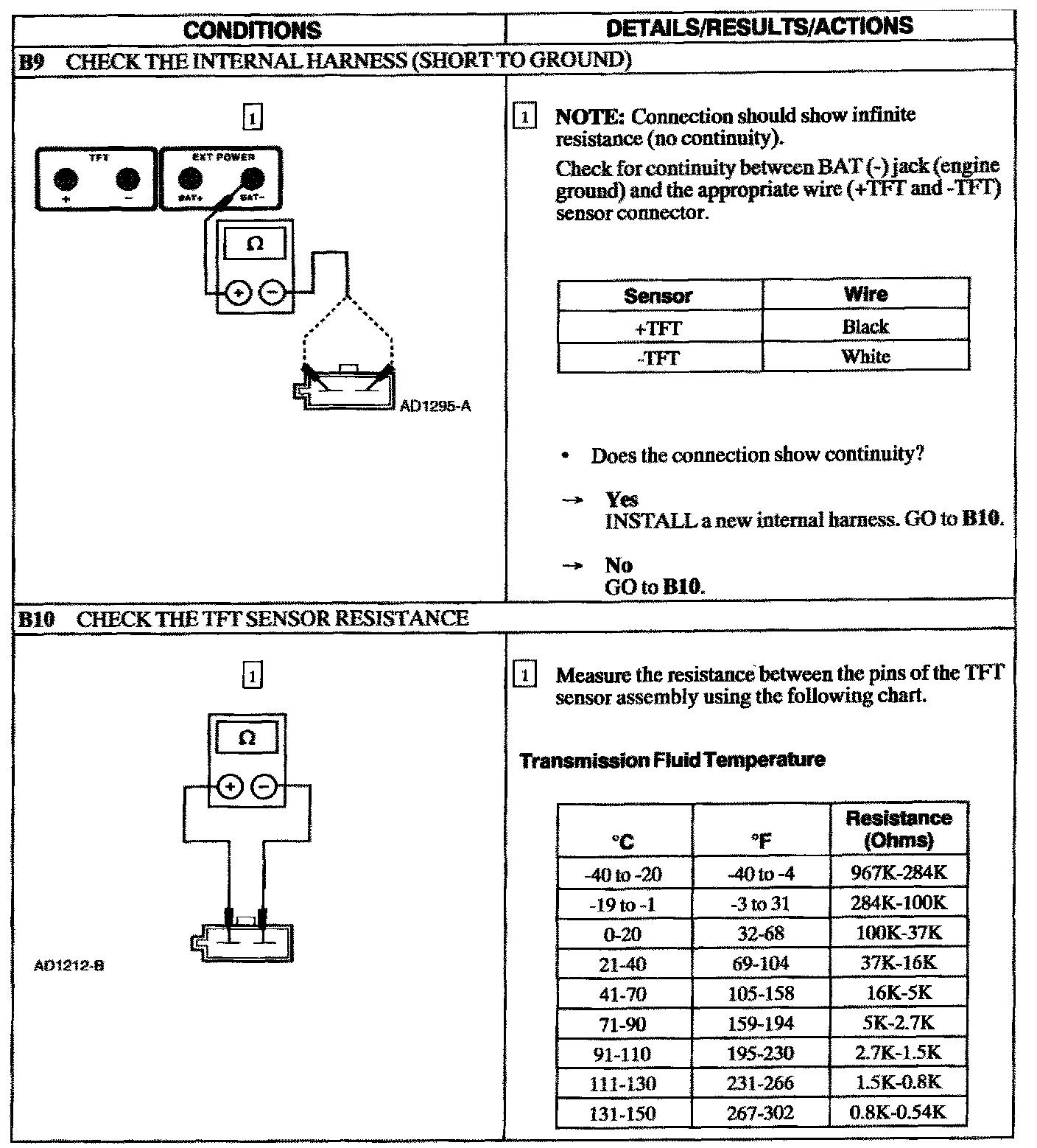 PINPOINT TEST B: TRANSMISSION FLUID TEMPERATURE (TFT) SENSORB1 - B2