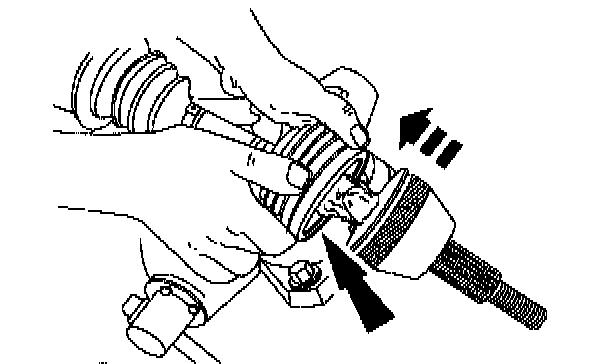 15. NOTE: The front wheel driveshaft joint has seated when the circlip locks in the groove cut in the inner race.