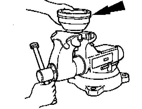 1. CAUTION: Do not allow the vise jaws to contact the front wheel driveshaft joint boot or the clamp. Use a vise equipped with soft jaws or wood blocks.