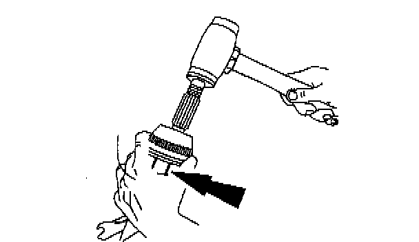 Using a brass drift and a hammer, separate the front wheel driveshaft joint from the interconnecting shaft.