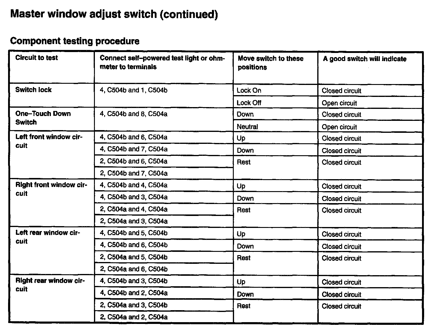 Master Window Adjust Switch